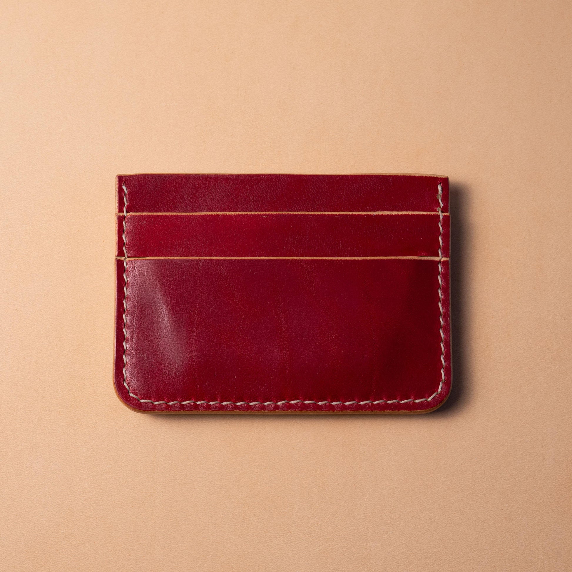 5 Pocket Card Holder / Crimson Red / White Polyester Thread / Maryam Horse Hide